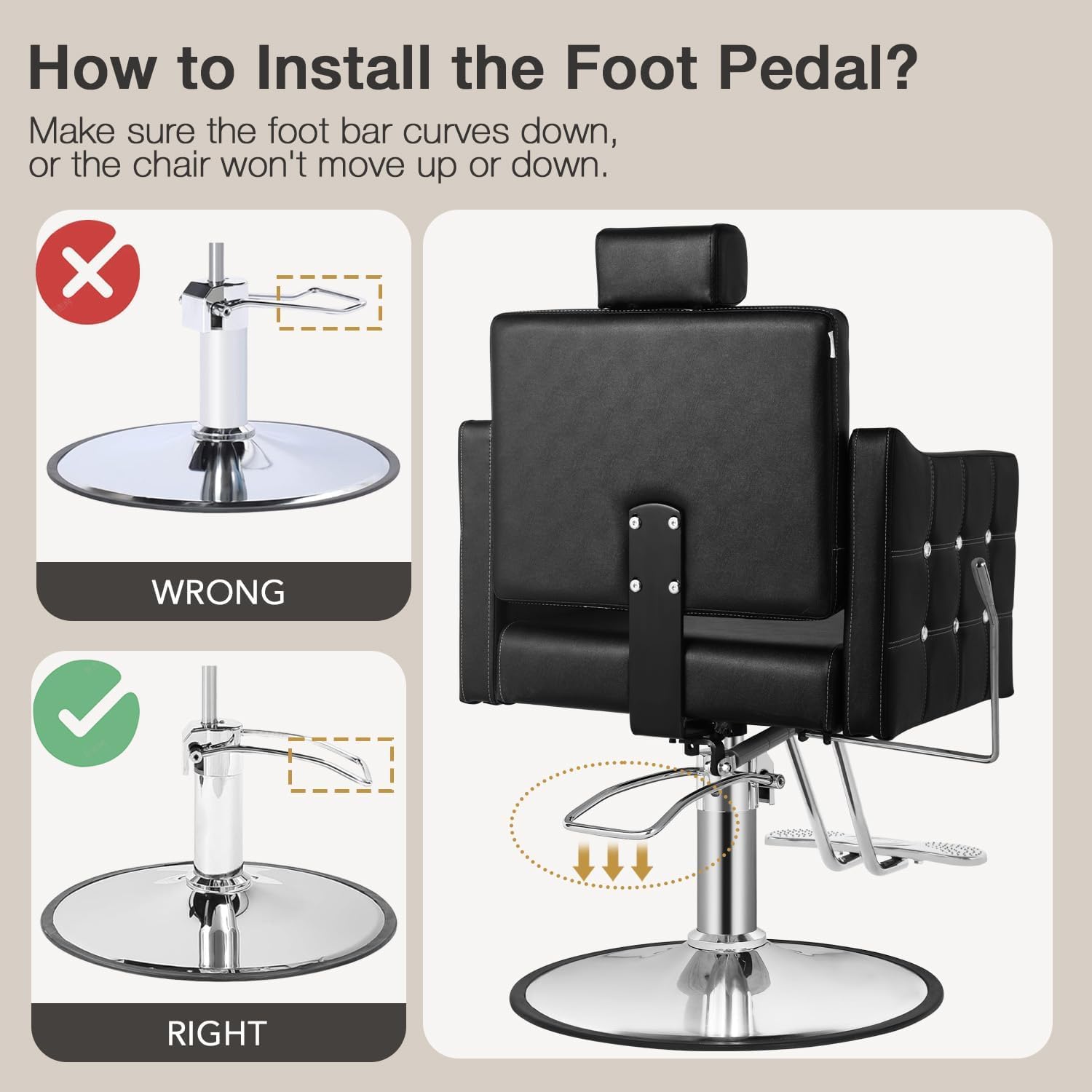 - All Purpose Salon Chair - Say goodbye to the hassle of buying separate barbering and styling chairs. This versatile styling chair is suitable for all barbering and salon styling services, with a tilt angle of 90 to 135 degrees and an adjustable headrest. Whether it's styling, coloring or cutting your hair, this chair has you covered.