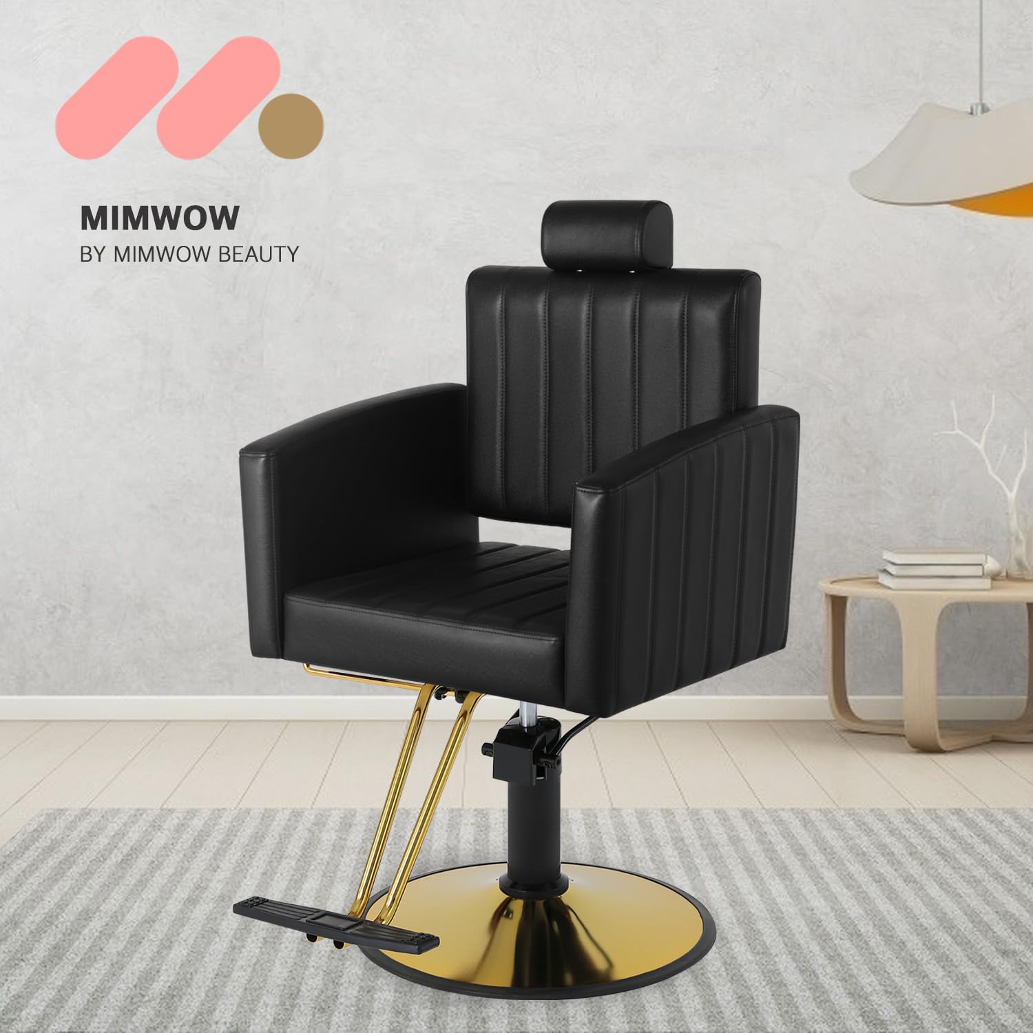 - 【Stylish Design】Elevate your salon's aesthetic with our MIMWOW black hydraulic styling chair. The striking gold base and striped pattern quilted decoration add a sophisticated touch, making it a beautiful addition to any salon or barbershop.