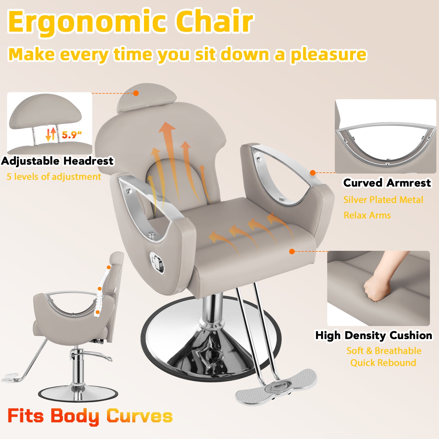 - More practical: Designed for versatility, this all-purpose hair chair offers a 360° swivel with a locking mechanism. The unique reclining feature allows clients to relax at a perfect 130-degree angle, providing pure indulgence and comfort during grooming sessions.